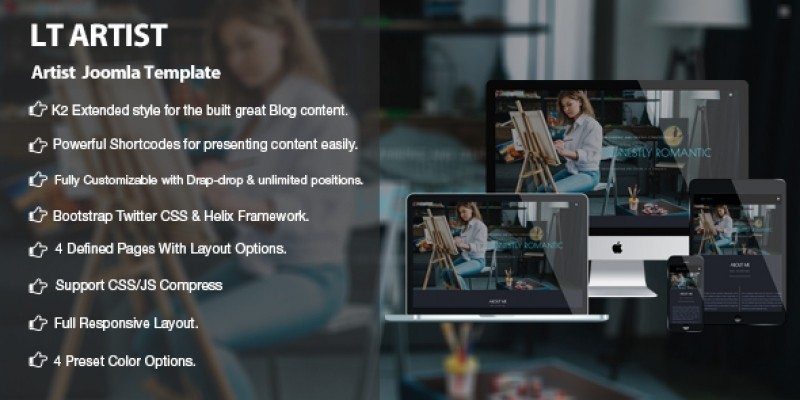 LT Artist is a responsive CMS template for artists’ websites. Whether you are into music, dance, photography, painting, and other forms of art or anything culture-related, then this template is for you! The CMS Art Templates are easy to install and setup and don’t require you being a tech geek. It will help you show your talent to the world and that highlights your artistic vision and uniqueness. Besides, the CMS Art Templates use high-quality images, fantastic sliders, smooth animation effects and great content organization to create a unique atmosphere for your viewers. The content is well organized so the viewer can understand from the very first second what your site is about. This template is fully responsive and supports cross-browser compatibility to make sure your site will look amazing regardless of the device used to access it. You also have the possibility to keep in touch with your viewers using the Contact form module that is integrated into each theme. It’s time to show the world your talent!